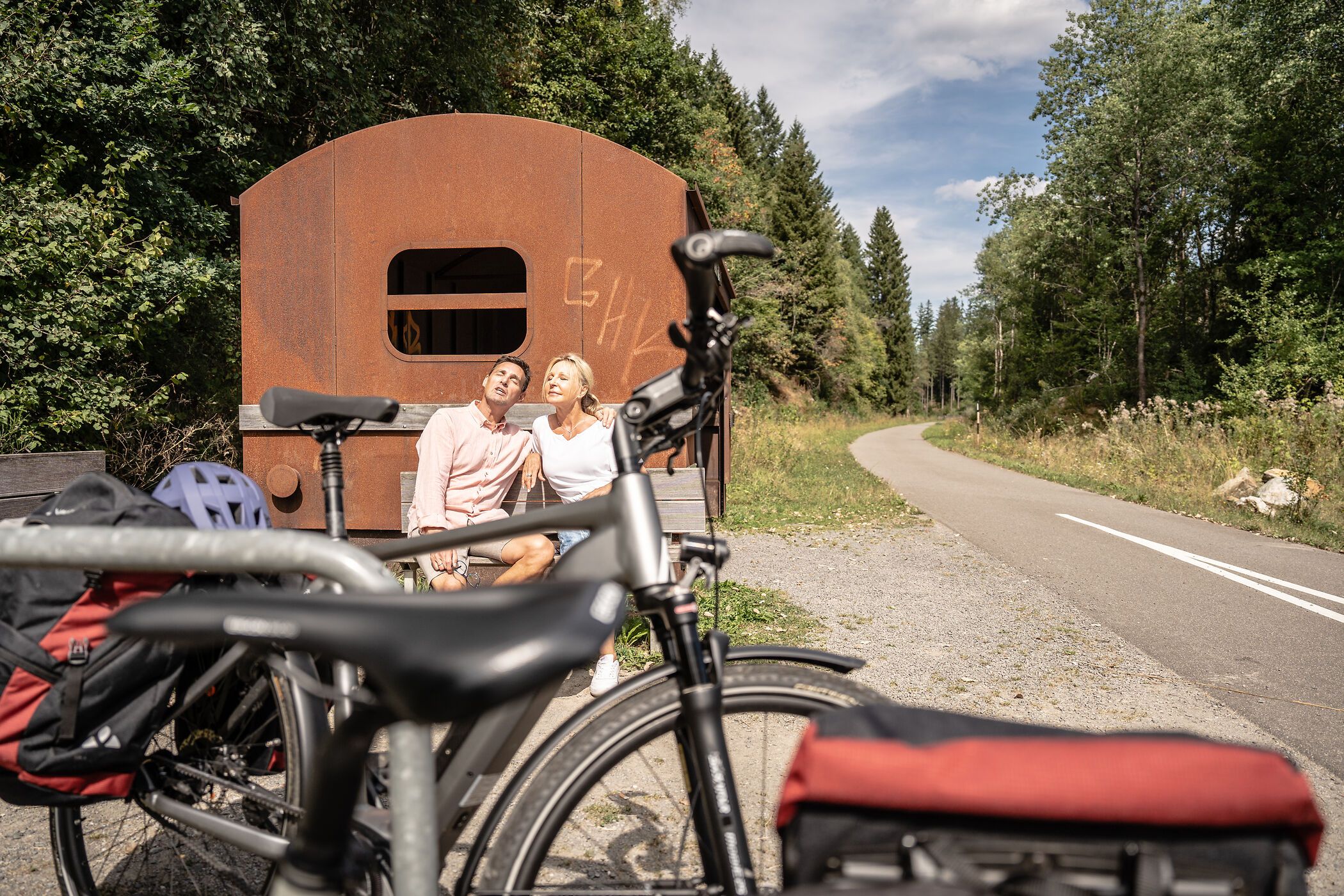 Die Tour startet am ehemaligen Bahnhof Monschaus, der außerhalb des historischen Stadtkerns gelegen ist. Über die Vennbahn führt uns die Tour bis Sourbrodt. Wo einst Züge mit Kohle und Stahl verkehrten, können heute Radfahrer die einzigartige Mittelgebirgslandschaft der Eifel/Ardennen bequem und steigungsarm erkunden. Auf unserem Weg passieren wir das ehemalige Schmugglerdorf Mützenich und erreichen nach nur wenigen Kilometern das Viadukt von Reichenstein, welches einen wunderbaren Ausblick auf die Umgebung bietet und für einen Hauch von Abenteuer sorgt. Ab Kalterherberg verlassen wir Deutschland und die Tour führt auf belgisches Hoheitsgebiet.