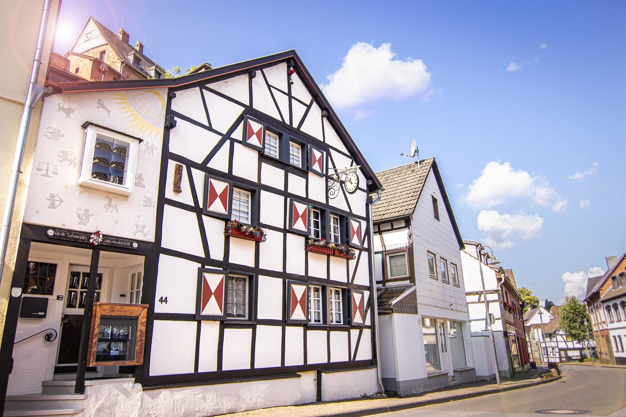 Das Haus liegt unterhalb der Burg Hengebach, zentral im Ortskern und gleich neben der Kunstakademie der Stadt Heimbach.