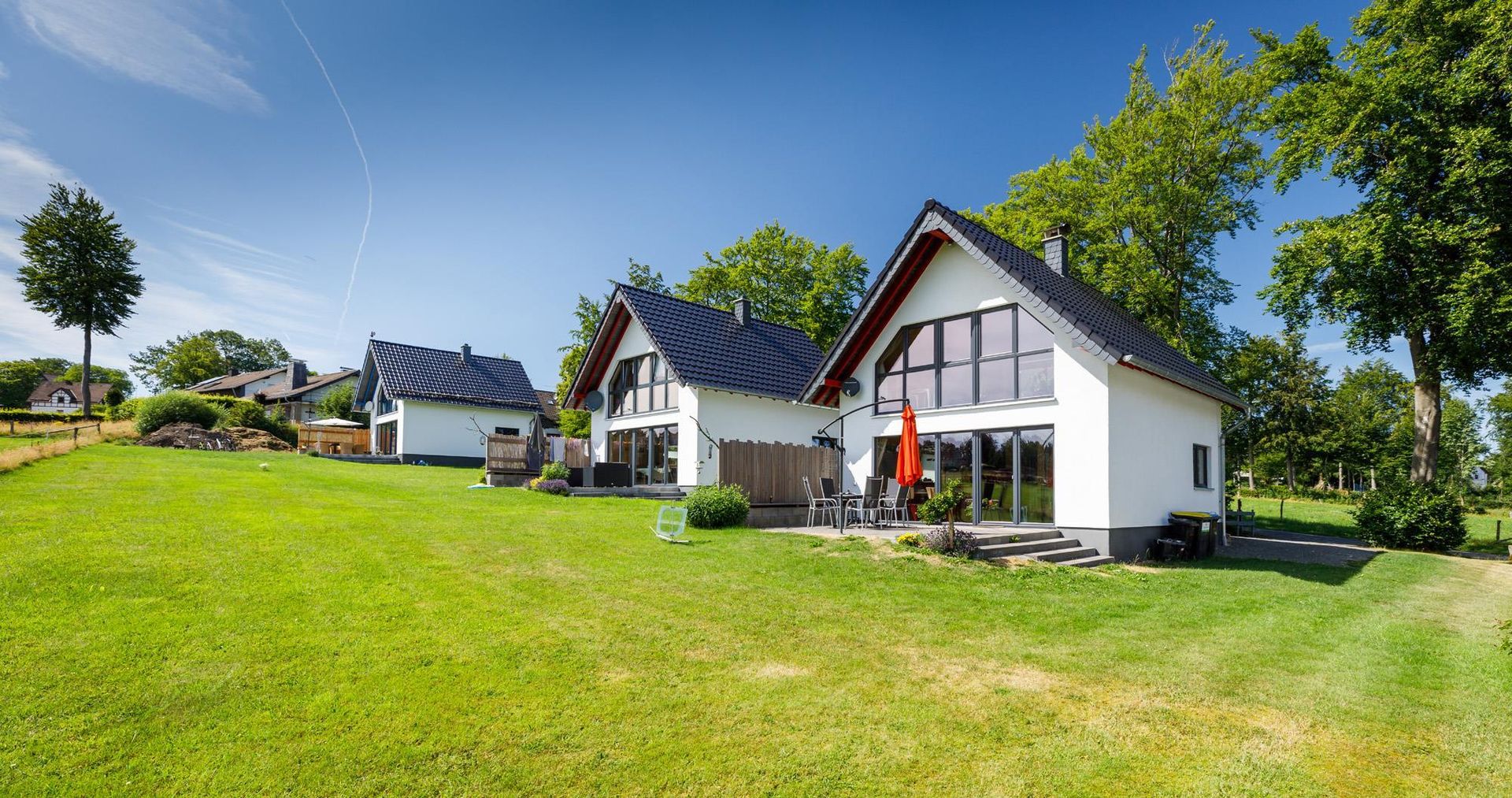 Ferienhäuser "Rotes Haus", "Graues Haus", "Blaues Haus": Lichtdurchflutete, ökologische Neubauten mit moderner Komfort-Einrichtung und exklusiver Ausstattung in idyllischem Eifeldorf am Hochmoor Hohes Venn.
