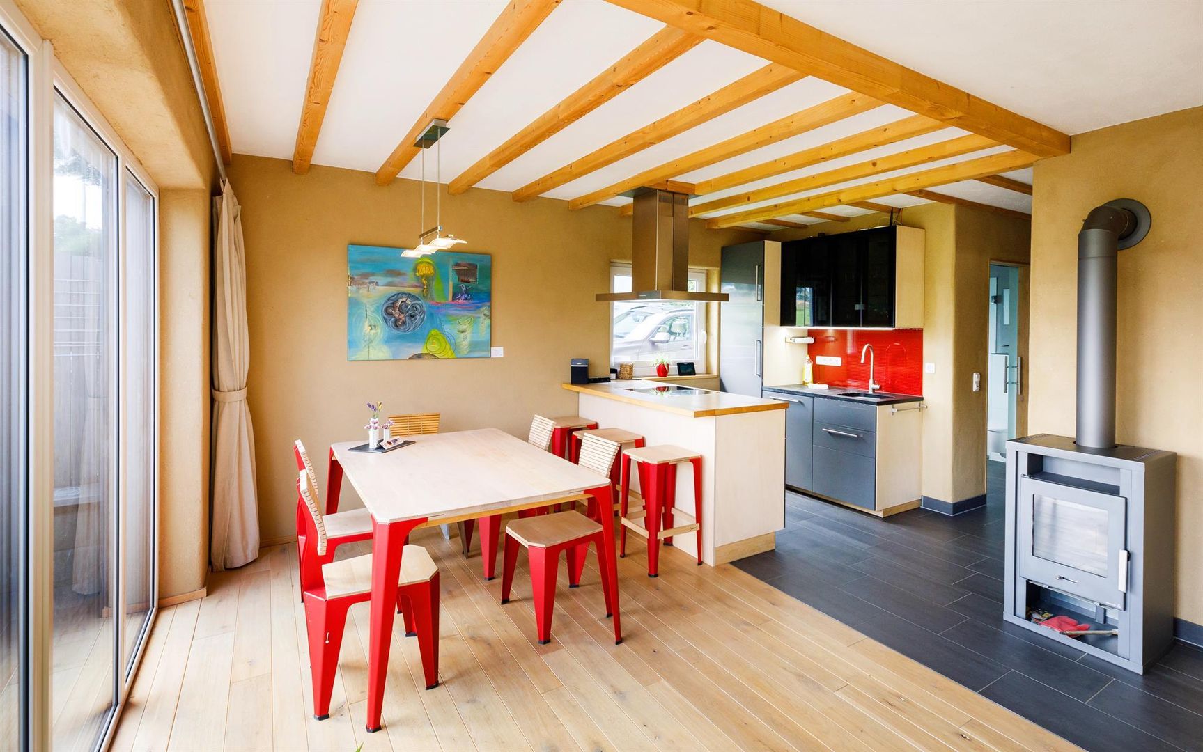 Gesundes Raumklima, warme Atmosphäre (Lehmputz und Naturmaterialien, allergiker-/ behindertenfreundlich)
