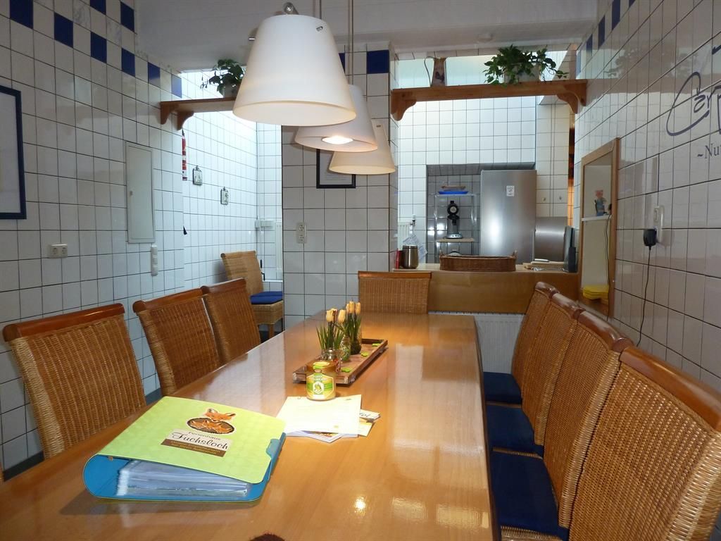 Das ganze Haus ist hell und freundlich eingerichtet. 6 Doppelzimmer, 3 Duschbäder mit WC+ 1 sep. WC. Ein Wohnzimmer mit 3 Ledersofas und Kamin. Eine große, helle Küche mit allem was man braucht, wie z.B. XXL Kühlschrank, sep. Kühl-Gefrierkombination, Spülmaschine und ein sehr großer Esstisch. Außerdem haben wir im Winter 2018 zu dem vorhandenen 4 Platten Cerankochfeld eine zusätzliche Induktionsplatte eingekauft. Natürlich mit passenden, neuen Kesseln und Pfannen, damit unsere Gäste die gerne kochen, dies noch besser ausleben können.