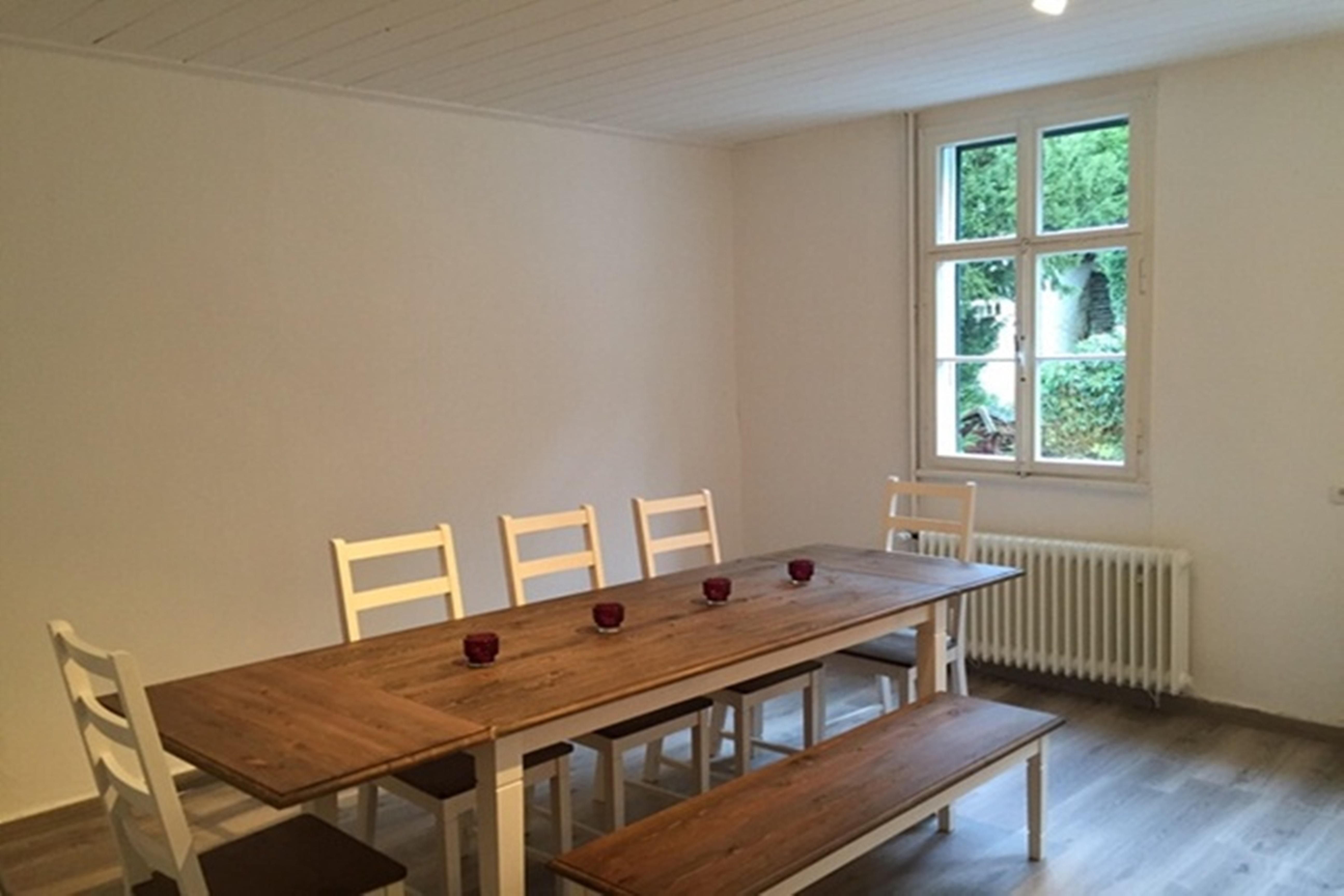Ein gemütliches Wohnzimmer lädt zum Verweilen ein für gesellige Stunden. Die Küche ist komplett ausgestattet und ein großer Esstisch bringt alle Gäste an einen Tisch.