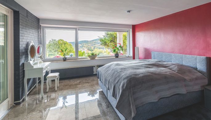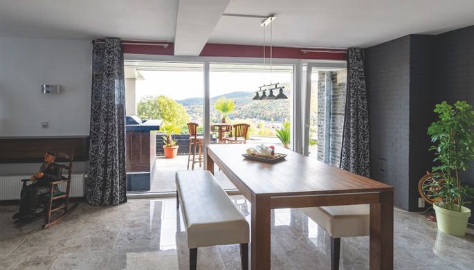 Vermietet wird das „Ferienhaus Eifelbiber“, ein freistehendes Haus mit ca. 55 qm Wohnfläche im Erdgeschoß , die sich auf: ein Wohn-Esszimmer, ein Schlafzimmer, Küche, Diele und Bad verteilen. Der Spitzboden bietet weitere 40 qm die sich auf zwei Schlafräume aufteilen und ist über eine offene Holztreppe zugänglich.