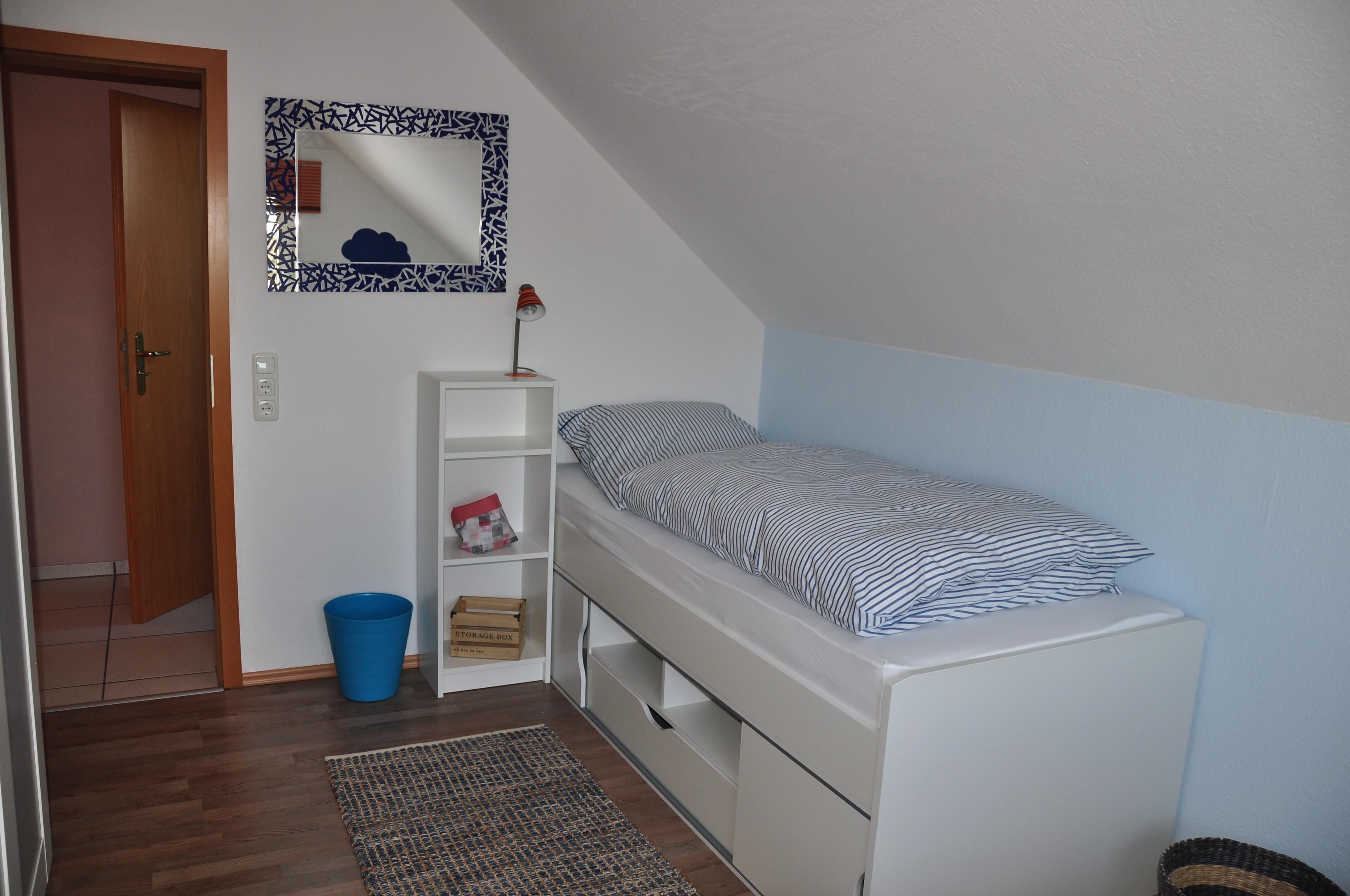 Ein Schlafzimmer ist mit einem einem Doppelbett (180x200) ausgestattet und ein weiteres Zimmer ist mit zwei Einzelbetten (90x200) ausgestattet.