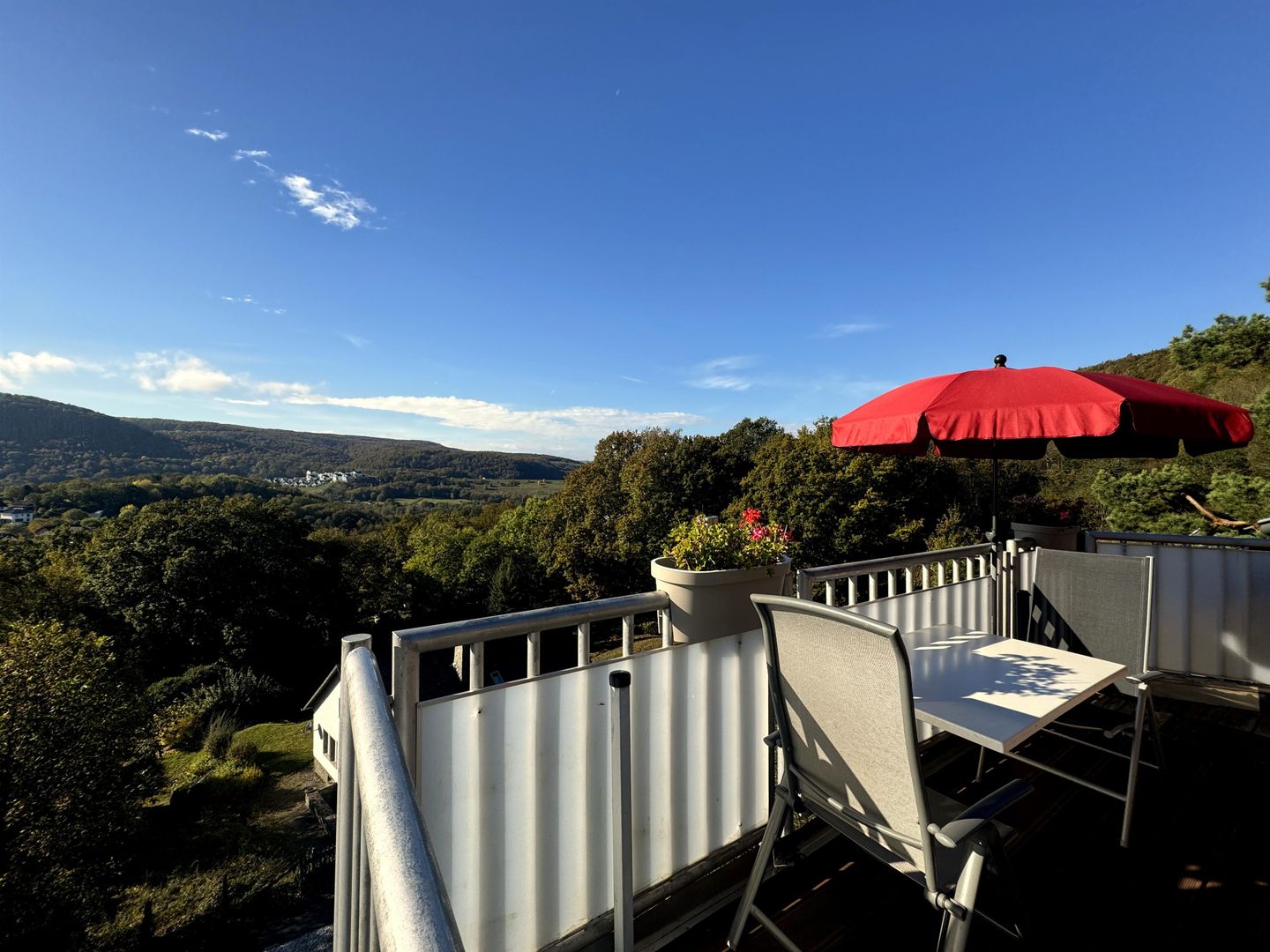 Vom Balkon aus haben Sie den schönsten Blick auf das Dorf, über die wunderschöne Berglandschaft der Eifel. Die Wohnung verfügt über zwei Schlafzimmer mit einem Kingsize-Doppelbett (2 mal 2 Meter) und zwei Einzelbetten.