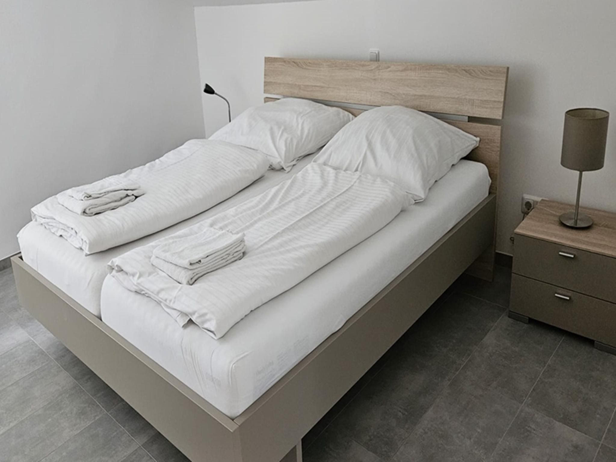 Die Wohnung verfügt über 2 Schlafzimmer. Ein Zimmer ist mit einem Doppelbett (180x200) ausgestattet; das zweite Schlafzimmer bietet ein Einzelbett (90x200).