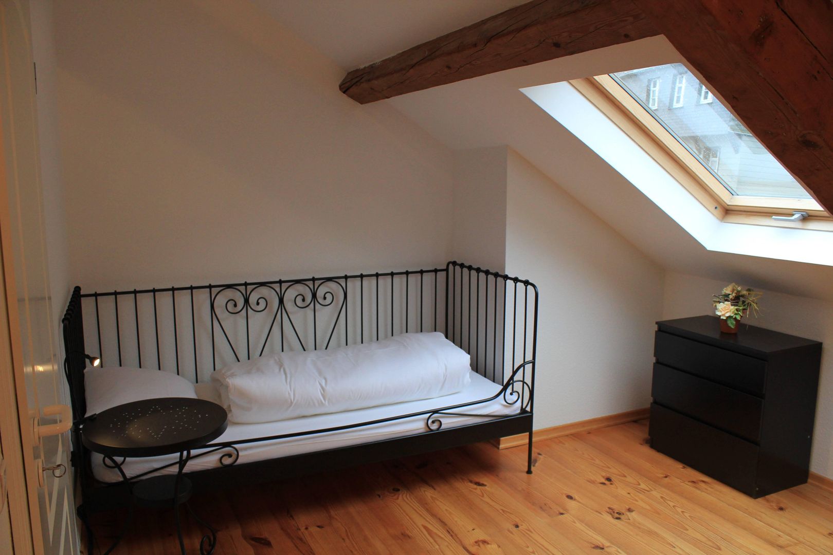 Die Räume sind großzügig und hell. Die teilweise frei liegenden Dachbalken